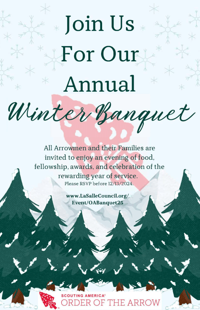 All Arrowmen and their families are invited to the annual Winter Banquet!