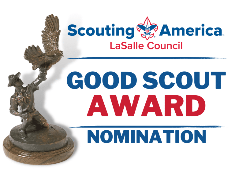 The LaSalle Council is currently accepting nominations for the 2026 Good Scout Awards. The Good Scout Awards recognize persons who are non-Scouters, but who exemplify the Scout Oath and Scout Law in their careers and personal lives. Each county’s award committee will select one honoree.